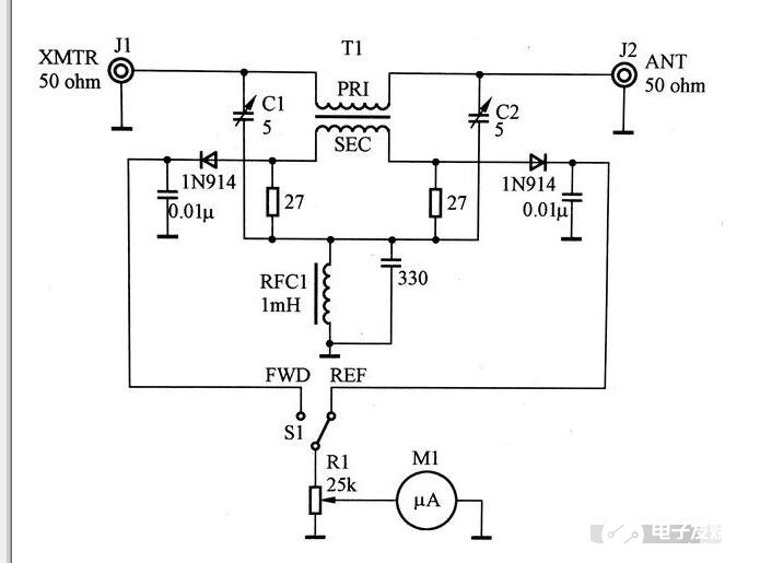 如下图1所示,是驻波表的电路图。