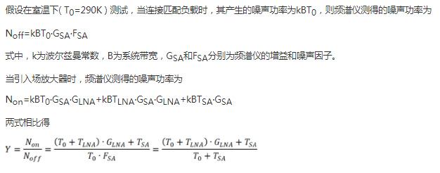 因场放大器的增益和噪声系数已知,便可以利用上式求解出频谱仪的噪声系数。