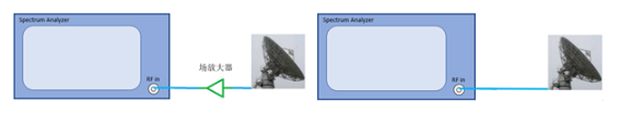 测试思路与上面校准过程类似,将待测天线与场放大器当作噪声源,其中引入场放大器时,相当于噪声源打开;去掉场放大器时,相当于噪声源关闭,测试连接示意图如图2所示。