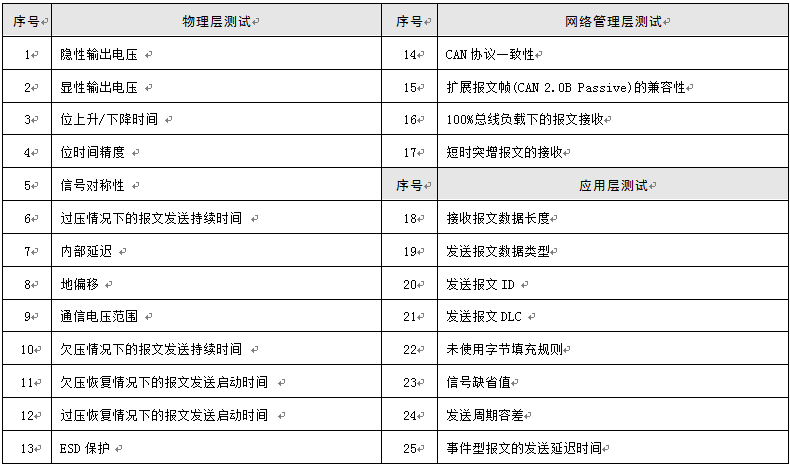 CAN一致性测试内容(节选)