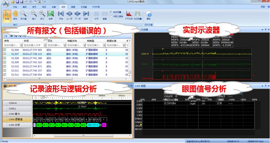 CANscope总线分析仪是CAN总线故障定位、干扰排除、可靠性测试全球唯一的解决方案,兼容CAN总线各种主流协议,也就意味着在各种现在施行或将来升级的标准,CANscope都能及时兼容更新,一致性测试更全、更快、更可靠。