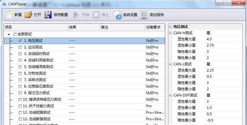 图8 CANTester物理层与数据链路层一致性测试部分项目