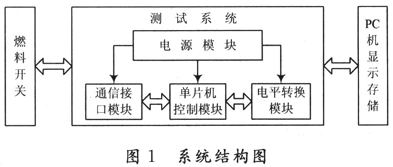 该测试系统基于PC机和单片机P89LPC938,测试人员通过PC机向测试系统发出测试命令,由单片机识别并处理测试指令,向燃料开关发出相应的测试信号,以测试对应性能。下面将对整个系统及每个模块进行详细说明分析。
