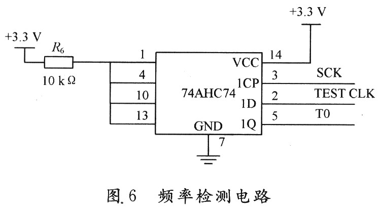 燃料开关是以数字通信方式与其他组件进行协同工作的,异步通信的工作频率则取自其中单片机的内部时钟,由于制造离散度及环境温度等的影响,实际的工作频率会发生漂移。为确保通信的可靠性,需要确认燃料开关工作在适当的频率范围内,故需要对其实际的通信频率检测与确认。要测试时钟信号的频率,可以通过测试一定区间内脉冲的个数来实现,测试时间越长,精度越高。本测试系统用D触发器和单片机的计数、定时功能来完成此检测。图6即为此频率检测电路。