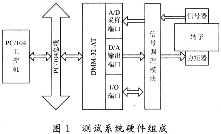 该测试系统由PC/104工控计算机、DMM-32-AT多功能数据采集卡、信号调理模块组成。其测试系统组成框图如图1所示。
