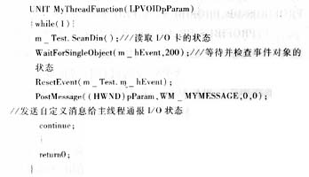 这样就由辅助线程完成了读取I/O口状态,判断用户在操作面板的动作,实现了对I/O端口的 监视。?