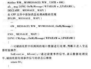 在主线程中定义消息映射机制,在头文件中添加对自定义消息及消息处理函数的定义。