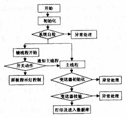 由于变送器的校验过程要占用系统很多时间,存在着比较多延时,而用户界面需要实时接受 用户的操作和实时显示对用户输入面板的监控,为此采用了多线程的技术解决这一问题。主 线程主要完成校验功能的实现,由辅助线程来实时更新用户的界面,对I/O