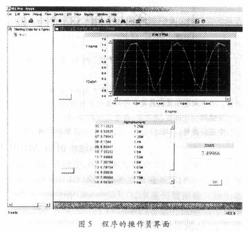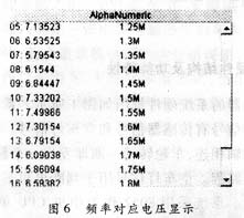 模拟生成。 该程序由VEE生成一扫频过程(见图4),再由万用表在每一频率随机生成一电压值(见图6), 比较后输出最大值。这一系列过程都由主程序设定,输出的操作员界面如图5所示。