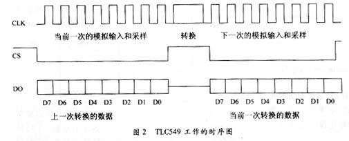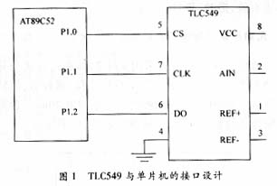 TLC549通过CS、CLK和DO这3个引脚和CPU相连,见图1。与并行A/D转换器相比,其接口电路简单,占用CPU的资源较少。当有更多路模拟输入需要A/D转换时,可以将多片TLC549并行连接,图3是两片TLC549与CPU的连接。