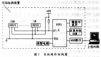 系统分为现场温度数据采集和上位监控PC两部分。图1为系统的结构图。需要指出的是,下位机可以脱离上位PC机而独立工作。增加