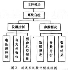 参数测试模块的调用。同时,为了提高测试系统的可靠性、安全性和准确性,在主控模块与功能模块之间采用了系统自检模块,通过自检模块来判断系统所有仪器是否开始工作和是否工作正常。仪器控制模块通过GPIB通讯