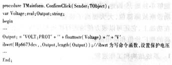 安捷伦公司对HP6673A大功率直流电源提供了SCPI函数,所以在编写电源控制模块时除了可调用基本的N1488.2所声明的函数外,在开发中还使用了SCPI函数简化程序设计。