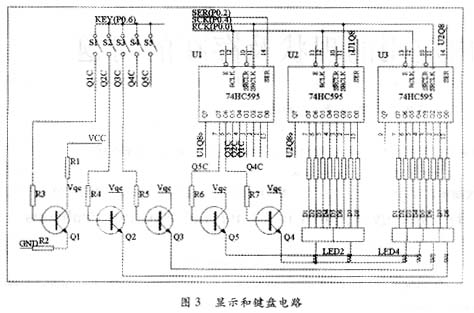 LED数码管组成(如图3所示)。由端口P0.2输入串行数据、P0.4产生移位脉冲,P0.0产生锁存脉冲。
