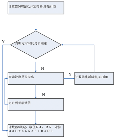 本设计选择82C54的模式0工作,计数器0、计数器1都工作于模式0,计数结束发出中断信号。软件流程如图4所示。