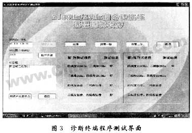 首先测试通信模块,在单台计算机上建立2个超级终端,一个与串口建立连接,另一个与Socket建立连接。在超级终端的一窗口内输入数据,另一窗口即时响应,说明网络接口模块功能正常。其次测试MCU串行通信性能,通过电平转换电路建立与计算机的串口连接,用超级终端进行数据传输验证。完成后,对全系统进行联调,先进行直连试验,即将测试终端与诊断终端通过交叉网线直连,验证功能的正确性;然后将测试平台接入Internet网,通过异地连接,验证功能的正确性。目前,经过多项调试验证,能够建立诊断终端与测试终端的连接,并可进行异地的各项状态显示、控制测试、复位等功能,实现了原设计目标。