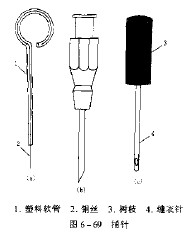 也可用缝衣针来制作捅针,银光闪闪,十分实用。制作方法是:去一段小树枝,把缝衣针针尖扎入树枝中,一个捅针即告制作成功。还可采用旧注射器针头作针头,效果也不错。