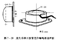 制作压电陶瓷蜂鸣时,很难找到合适的固定座及助音腔。实践中发现,大功率三极管3DD15的金属壳直径为20mm,用作压电陶瓷蜂鸣器的固定座及助音腔是非常合适的,作法见图7-29,