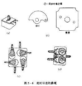 一种可能是双连动片轴的固定螺母松动,动片不动。这时可将双连拆开,将一组动片空眼对准,见图5-6(b),将另一组动片空眼与薄膜的另一空眼对准。可以用大头针穿进孔内试试是对准,这样两组动片即同步,旋转角度应是一致的。对准无误后,即可把螺母旋紧紧装好。