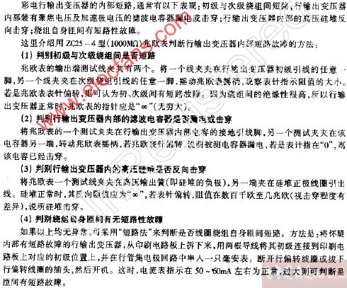 用兆欧表判断彩色电视机行输出电压器短路故障