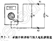 测量超过20MΩ的大电阻方法很多,这里介绍一种方法,是根据电阻并联的原理,简介测量出被测大电阻的阻值。