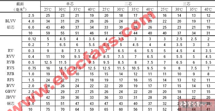 塑料绝缘软线、塑料护套线明敷设长期连续负荷允许载流量表