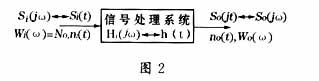 当检测的信号光非常微弱时,通过光电探测器转换后得到的光电信号的信噪比(S/N)很小,这就需要一些特殊的微弱信号检测方法将信号从噪声中提取出来〔4〕。为了从信号处理系统获得最大的信噪比,系统的 频率函数和输入信号之间应满足一定的关系。 设,信号处理系统如图2所示。其H(jω)为系统的频率函数;h(t)为系统的脉冲响应;Si(t)为输入信号;So(t)为输出信号;Wi(ω)为输入白噪声的功率谱密度,且Wi(ω)=No;PN(t)为输出噪声功率;Wo(t)为输出噪声的功率谱密度;Si(jω)为输入信号频谱;So(jω)为输出信号频谱。