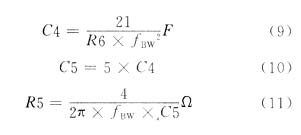 当参考频率为400Hz时,带宽的典型值为100Hz,当参考频率为5kHz时,带宽的典型值为500Hz到1000Hz。C4,C5,R5按下式选择: