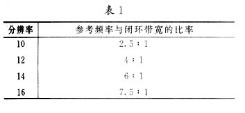 选择闭环带宽(fBW)时,必须保证参考频率与闭环带宽的比率不超过表1所示的指标。