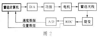 雷达伺服系统必须满足一定的精度要求,同时要确保其具有高的可靠性,而在某些雷达中还要求其体积小、重量轻。基于无刷旋转变压器与AD2S83集成电路的优点,选用高可靠性的无刷旋转变压器与AD2S83 RDC构成这些雷达的角位置检测系统,并以AD2S83的模拟速度输出信号来作为速度反馈信号构成雷达伺服系统的速度回路是设计这些雷达伺服系统时较好的选择。系统框图见图2。