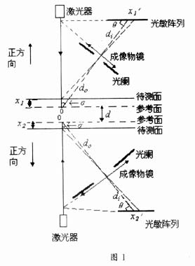 用一束激光照射到被测物面上,由物体表面散射光成像,通过光电传感器CCD(电荷耦合器件)将像信号转换为电信号测出其像点位置。物面移动时,因像点相应移动,由此即可求出位移量。在检测过程中,用激光上下表面双三角法,准确地测量运动物体的厚度。