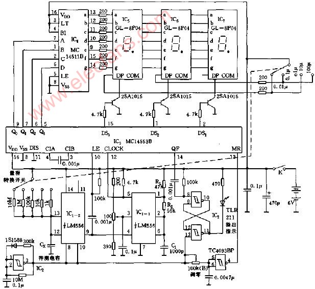 三位数字显示电容表电路图