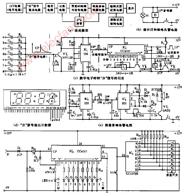 夜班防睡控制、记录仪电路图