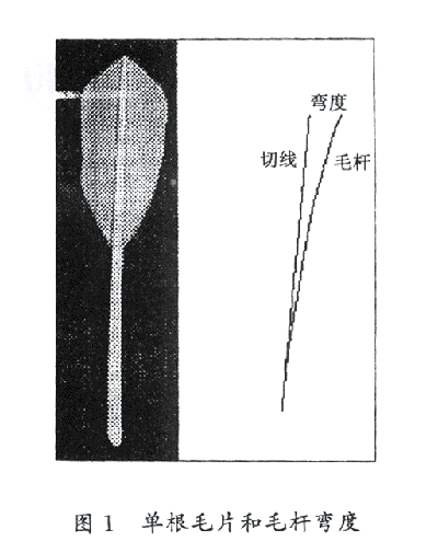 毛片的主要几何参数有毛杆的弯度、拱度和毛杆顶部的粗细等。这里的弯度指的是毛杆