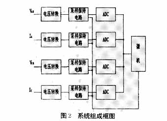 实际电路中待测电压、电流并不符合PCL818的信号输入要求,因此需要采样电路首先将电压电流转换到PCL818的输入范围内。PCL818的输入范围可根据需要选择±5V和±10V,这里选为±5V。电压信号和电流信号分别用电压互感器和电流互感器转换到相应的范围。