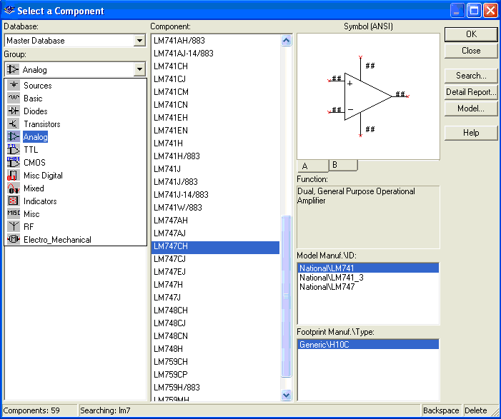 Every schematic begins with the selection and placement of components, and as a result an engineer’s initial task is to search their capture tool’s database for specific components. Many traditional EDA tools are lumbered with disorganized databases that are difficult to navigate. In these tools, component selection is a hurdle in the design process. In Multisim, all 17,000 components in the master database are logically organized into easy-to navigate groups (Figure 2). These groupings reflect the type of device and functionality, so that components such as diodes are in one group, while op-amps populate a separate analog group. This logical organization mirrors the way most manufacturers present their own parts libraries, providing an intuitive interface that an engineer has encountered many times before.