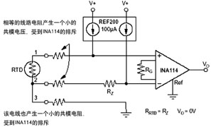 图3所示为INA114的基本连接要求。如用于噪声或高阻电源时,需要在靠近电源引脚处连接去耦合电容。
