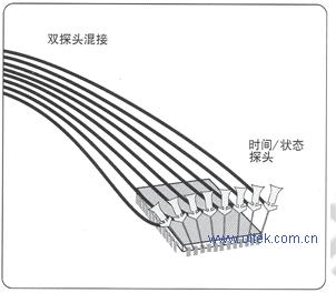 使用示波器观察分析数字波形的模拟特点时,需要用到逻辑探头,为隔离确切地成因,数字设计人员通常需要查看在具体逻辑条件下发生的特定数据脉冲,这要求逻辑触发功能。如图3为逻辑探头示意图,可以在大多数示波器中增加这种逻辑出发功能。