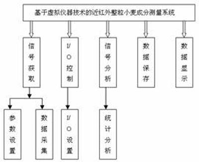 虚拟仪器[5]的概念,是美国国家仪器公司(National Instruments Corp.简称NI)于1986年提出的,它是在以计算机为核心的硬件平台上,其功能由用户设计和定义,具有虚拟面板,其测试功能由测试软件实现的一种计算机仪器系统。本文结合虚拟仪器技术和近红外光谱分析技术,搭建了一个快速无损检测整粒小麦成分含量的系统。