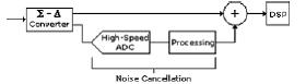 举例来说,当NI设计工程师着手开发第一款NI PXI数字万用表时,他们对现有数字万用表当中使用的ADC进行了评估,包括Dual-slope, Charge-Balance-with-Ramp-Down, 和sigma-delta等各类ADC。没有一种现有的ADC实现方案能够满足PXI标准的要求,也不能达到产品在噪声,线性度,速度以及灵活性上的要求。因此设计工程师们开发了一种全新的解决方案,将现成可用的高速ADC技术与获得专利的sigma-delta ADC技术结合起来,参见图2。