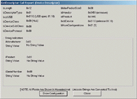 USBCheck的设备框架测试能读出描述符并发送标准请求,这些测试作为初始检查非常有用,此时Windows从设备上检索到它所想要的信息。图 2显示了USBCheck从集线器接收到的设备描述码。主机对USB设备枚举成功后,应用软件可以按预定用途对设备进行测试,Windows设备驱动程序可通过组合API函数如ReadFile()、 WriteFile()或DeviceIoControl()等使应用软件访问USB设备。有些不同等级的设备还有额外支持,如应用软件能以访问其它驱动器的同样方法访问USB驱动器,应用软件不必了解驱动器是使用USB还是其它接口,因为这些细节在更低一级中进行处理。对于许多设备来讲,USB等级规范定义了设备的预定功能及固件响应,如HID、大容量存贮器件和用于静止图像捕获的设备等。