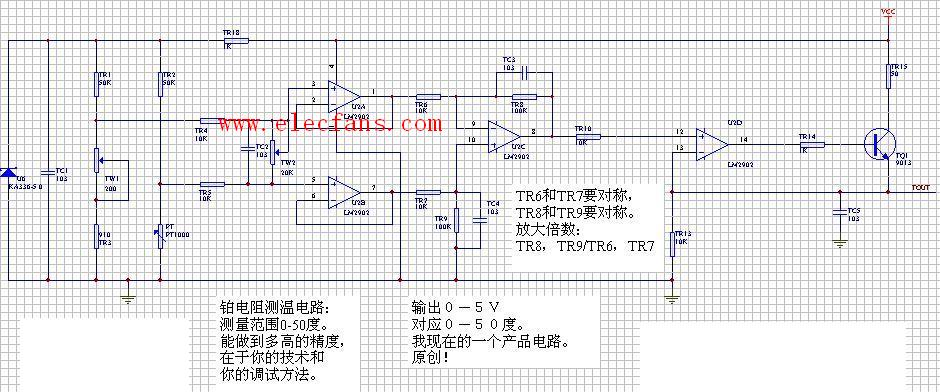 铂电阻测温电路:测量范围0-50度,能做到多高的精度,在于你的技术和你的调试方法。