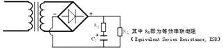 因此,原本的直流电压就会在上面叠加了一个交流信号,即所谓的纹波,而这纹波的大小除与所加上的负载RL有关外,也与ESR的大小有关,如果ESR太大,则纹波变大,同样,消耗功率也大,这也就是在实际电路工作时,有时在摸电解电容时会发热的原因,若ESR过大,则电解电容发烫,而有冒烟现象!!