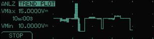 趋势绘图是一种最小/最大值记录形式,当每次达到存储器末尾时,仪器将自动压缩时间刻度。当仪器存储将要溢出时,信号处理器将快速启动工作。处理器将相邻的记录间隔组合为一个新的最小值和最大值。用户仍然能够观察到最差测量值和总体趋势。由于用户能够选择停止测量的时间,所以就自动获得了可用存储器条件下的最佳时间分辨率。