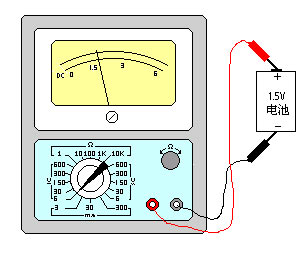 测量直流电压:--首先估计一下被测电压的大小,然后将转换开关拨至适当的V量程,将正表棒接被测电压“+”端,负表棒接被测量电压“-”端。然后根据该挡量程数字与标直流符号“DC-”刻度线(第二条线)上的指针所指数字,来读出被测电压的大小。如用V300伏档测量,可以直接读0-300的指示数值。如用V30伏档测量,只须将刻度线上300这个数字去掉一个“0”,看成是30,再依次把200、100等数字看成是20、10既可直接读出指针指示数值。例如用V6伏档测量直流电压,指针指在15,则所测得电压为1.5伏。