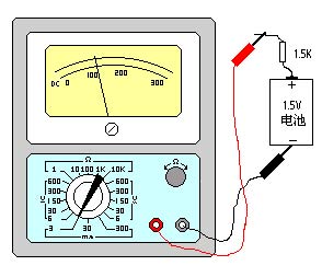 测量直流电流:--先估计一下被测电流的大小,然后将转换开关拨至合适的mA量程,再把万用表串接在电路中,如图所示。同时观察标有直流符号“DC”的刻度线,如电流量程选在3mA档,这时,应把表面刻度线上300的数字,去掉两个“0”,看成3,又依次把200、100看成是2、1,这样就可以读出被测电流数值。例如用直流3mA档测量直流电流,指针在100,则电流为1mA。