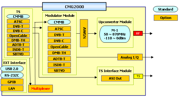 CMG2000是一款集成的CMMB信号源测试系统,它完全遵循中国移动多媒体广播标准CMMB。其射频部分采用高性能的RF变频模块,支持的频段范围为:50MHz ~ 870MHz(步进:1Hz)。 CMG2000是一套灵活的解决方案,可以为CMMB芯片公司、Tuner研发公司、便携式接收终端以及手机接收终端提供高质量的实时调制的测试信号。