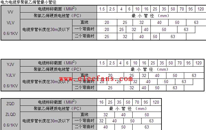 电力电缆穿聚氯乙烯管最小管径