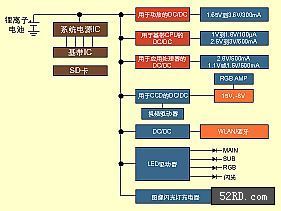 从图1可以看出,不断增多的功能促使手机需要更多不同功率水平的低电压输出电平。一个例子是用于图像处理的应用处理器,它在视频捕获期间需要高达360mw的功率。在满负荷运行时,手机内部系统的负载所需的峰值功率通常将超过4W。这么高的功率会很快耗尽电池的能量。影响电池运行时间的另一重要因素是电源效率和系统电源管理。