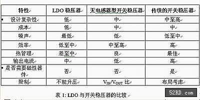 对于可满足手机内部电源转换需求的不同电压稳压器,我们必须认真考虑它们的优缺点(见表1)。目前有三种选择:线性LDO稳压器、无电感型开关稳压器(亦称为充电泵)以及传统的开关稳压器(基于电感器) 。